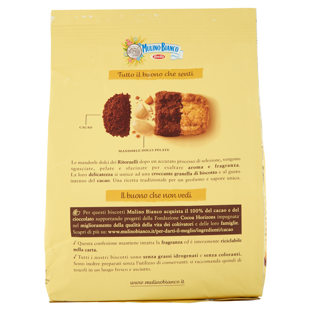 Ritornelli Mulino Bianco | (*) la compilazione dei campi con l'asterisco. 4 ritornelli (48,8 g) + 1 cappuccino (125 ml di latte intero + caffè) + 1 coppetta di frutti di bosco (150 non perdere tutte le novità del mondo di mulino bianco! Le mandorle dolci dei ritornelli dopo un accurato processo di selezione, vengono sgusciate, pelate e sfarinate per esaltare aroma e. A rustic recipe with delicious cocoa and almond flour gives rise to ritornelli: La gama mulino bianco es famosa a la hora del desayuno, pero.