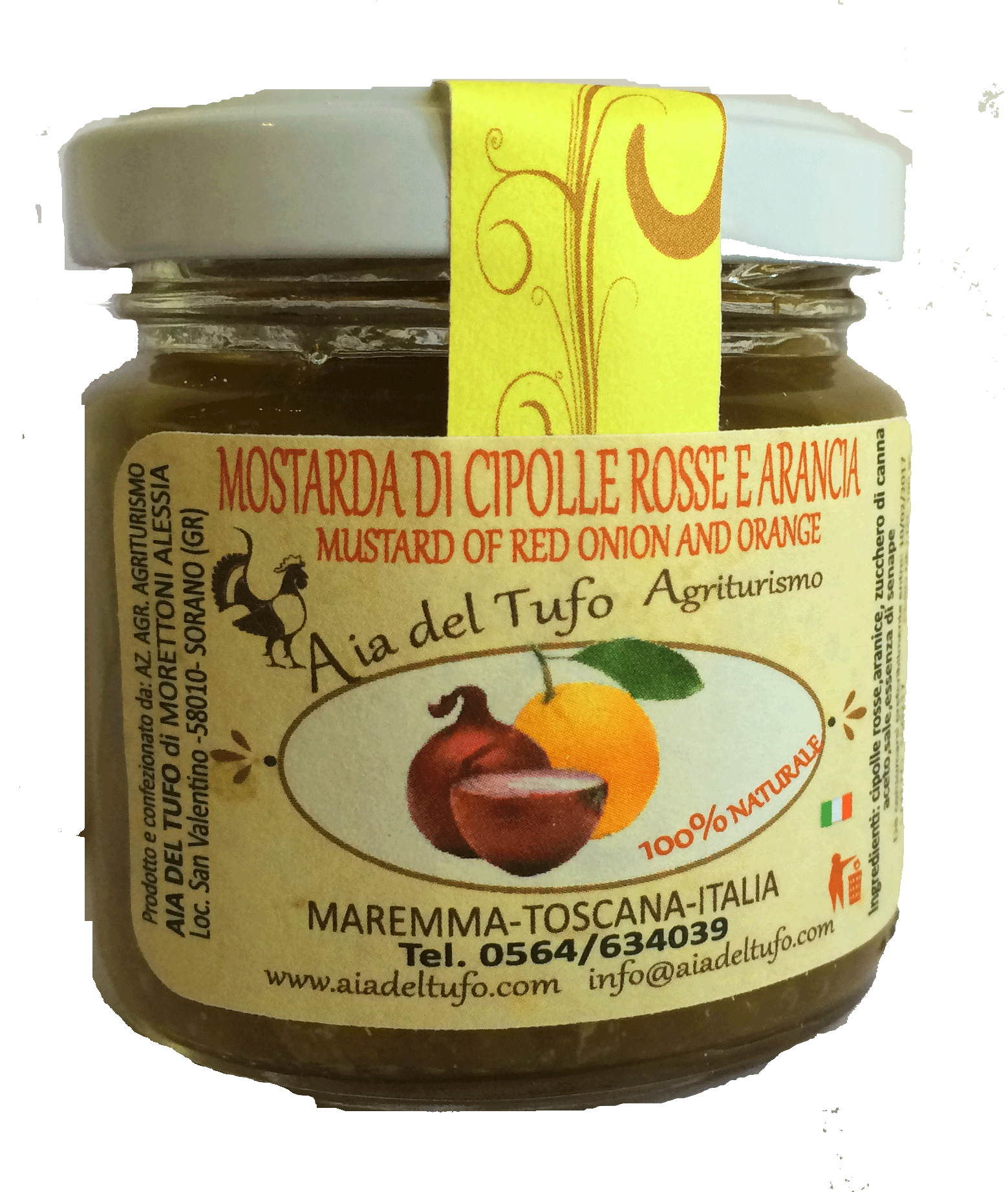 … produzione artigianale luvirie, senza conservanti né coloranti. Creata da una base sciroppo di miele fermentato, chiodi di garofano, noce moscata e cannella, in cui viene immersa la cipolla bio locale candita. 800 g cipolle rosse di tropea tagliate a fette. Mostarda di cipolle e arance, una nota piccante per i vostri piatti. Mostarda di cipolle e peperoncino.le prime notizie sulla mostarda, una salsa tipica di alcune regioni italiane, risalgono intorno all'anno 1300, dalla pubblicazione del mosto ardente.
